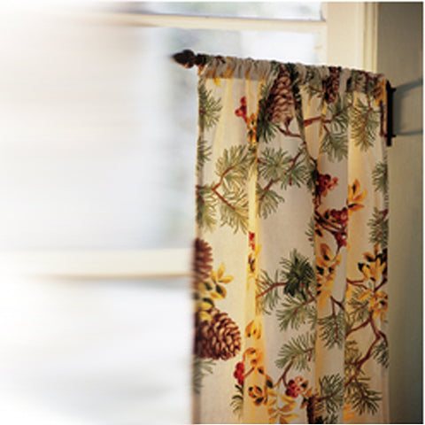 Our signature pine cone fabric available in Natural or Red is the ultimate design when looking for a rustic yet chic fabric. Exclusively Whispering Pines’ design, this fabric looks great in any rustic or country home. Available by the yard. 54" width. 100% cotton. Great upholstery and drapery fabric treated with Dupont Teflon. Swatches available by order. Dry cleaning only. 27″ × 27″ repeat.